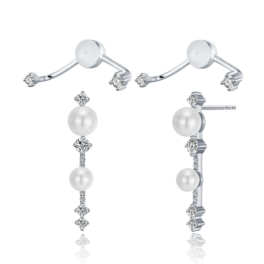 "Gravity Defied. Pearls whisper, zirconia shouts — all floating on dreams in sterling silver.
